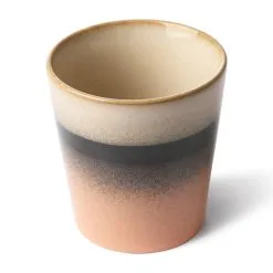 70’s muki tulee HKlivingiltä. Se on valmistettu lasitetusta keramiikasta ja se tuo mieleen 1970-luvun tyylin. Muki on saatavana eri lasituksilla erivärisinä ja niitä on hauska yhdistellä keskenään.