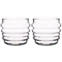 Nämä värikkäät juomalasit kuuluvat Marimekon uuteen Sukat Makkaralla -lasisarjaan. Kahden lasin paketti. Kuusi värivaihtoehtoa, jotka sopivat saman sarjan kannuihin ja viinilaseihin.